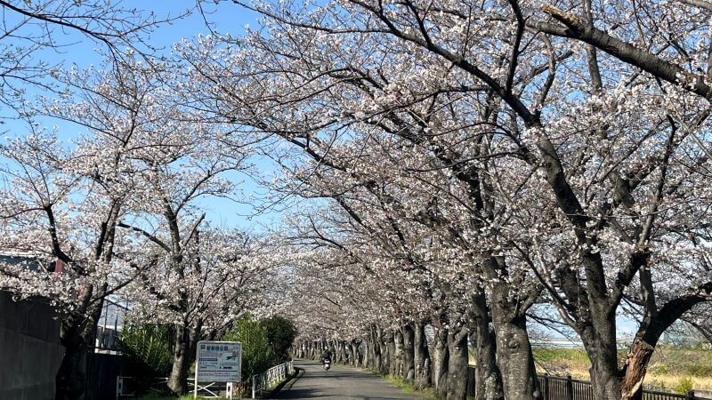 新幹線公園へ向かう途中、桜並木が400mほど続きます。